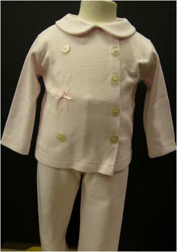Designers Baby Pink Girls Pique top and pant set with bunny embridery by Il Gufo pima cotton quality baby clothes that feels soft for the luxurios baby More Detail..