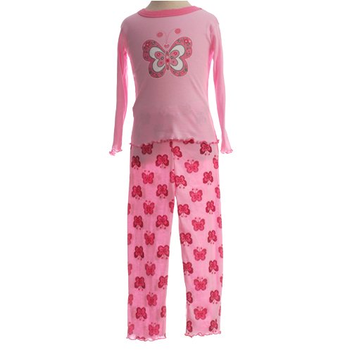 Your little girls will be adorably comfy in these pink pajamas by Royal Wear. The sleepwear set features a butterfly pattern. The ribbed long-sleeve shirt and pants have pink ruffled edges. and then update cheapest prices immediately. Limited time Only!